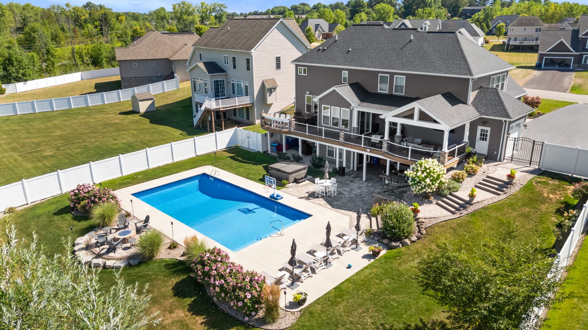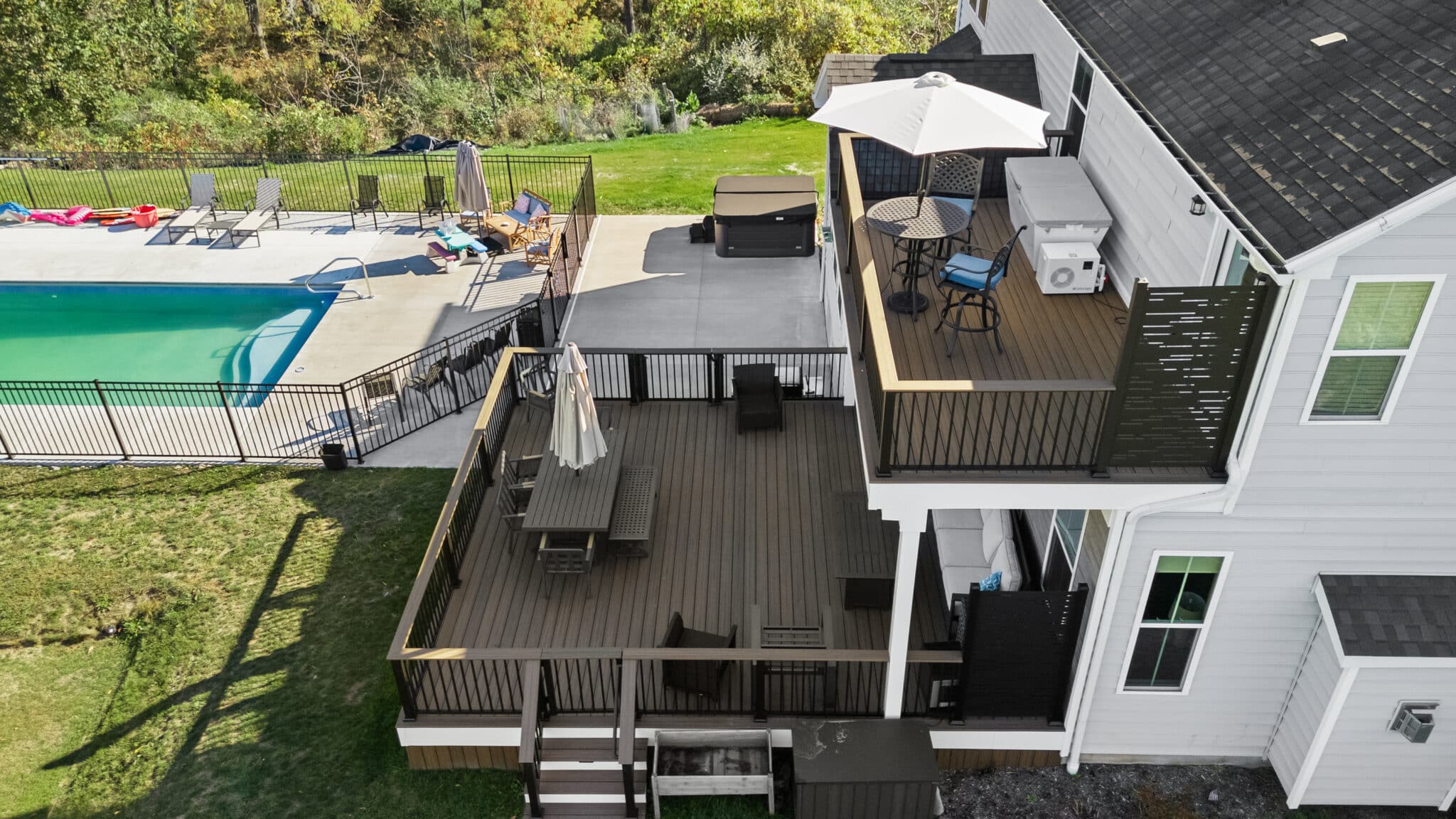 Modern Pool House Trex Deck / Curved Timbertech Deck – Victor, NY Project ID: #029
