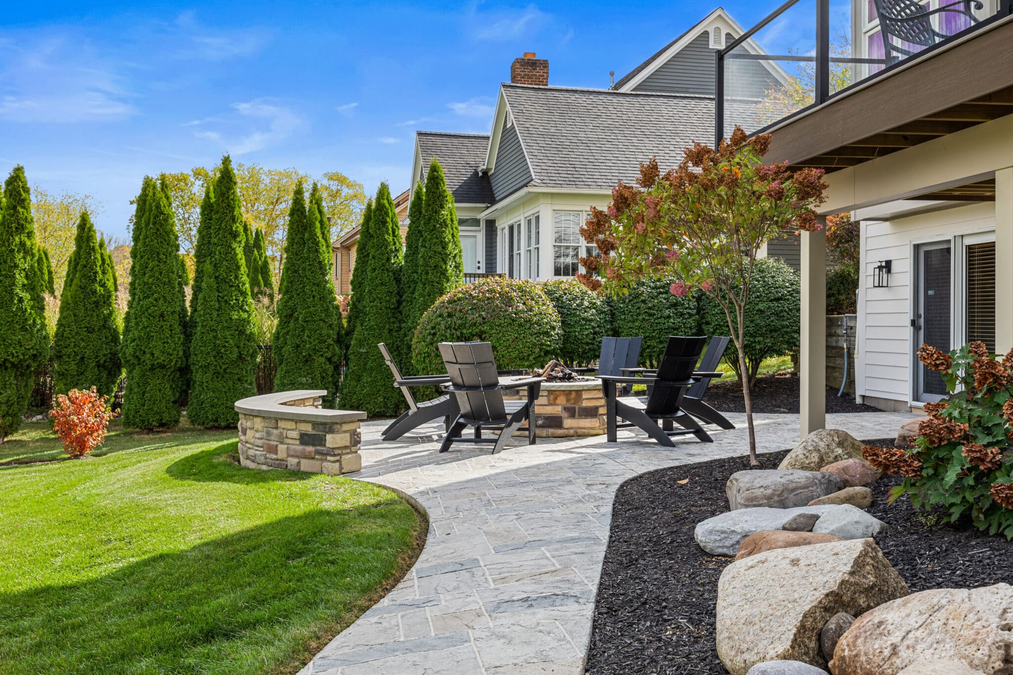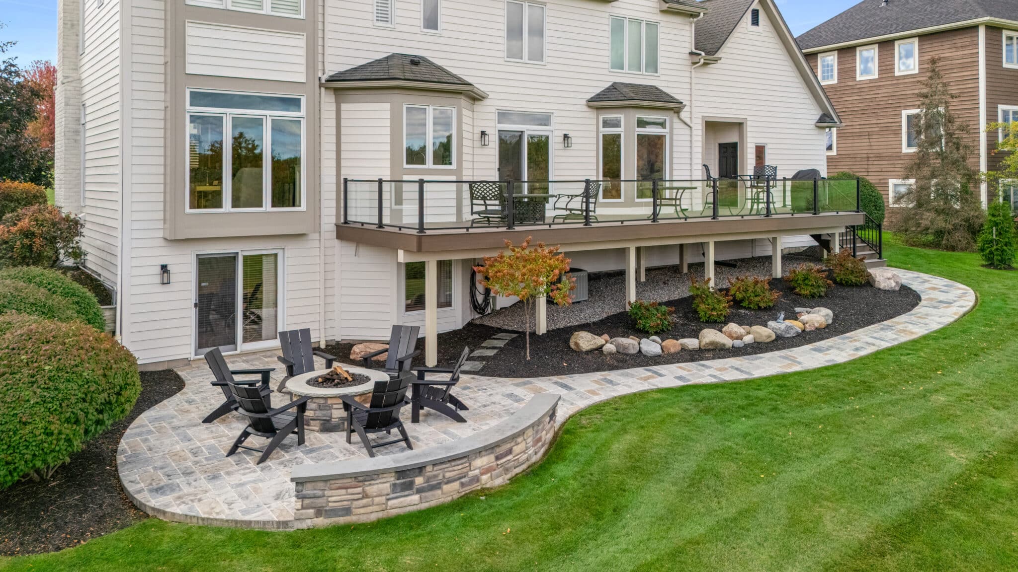 Trex Fire Pit Deck / Fireplace / Flagstone Patio – Victor, NY Project ID: #052
