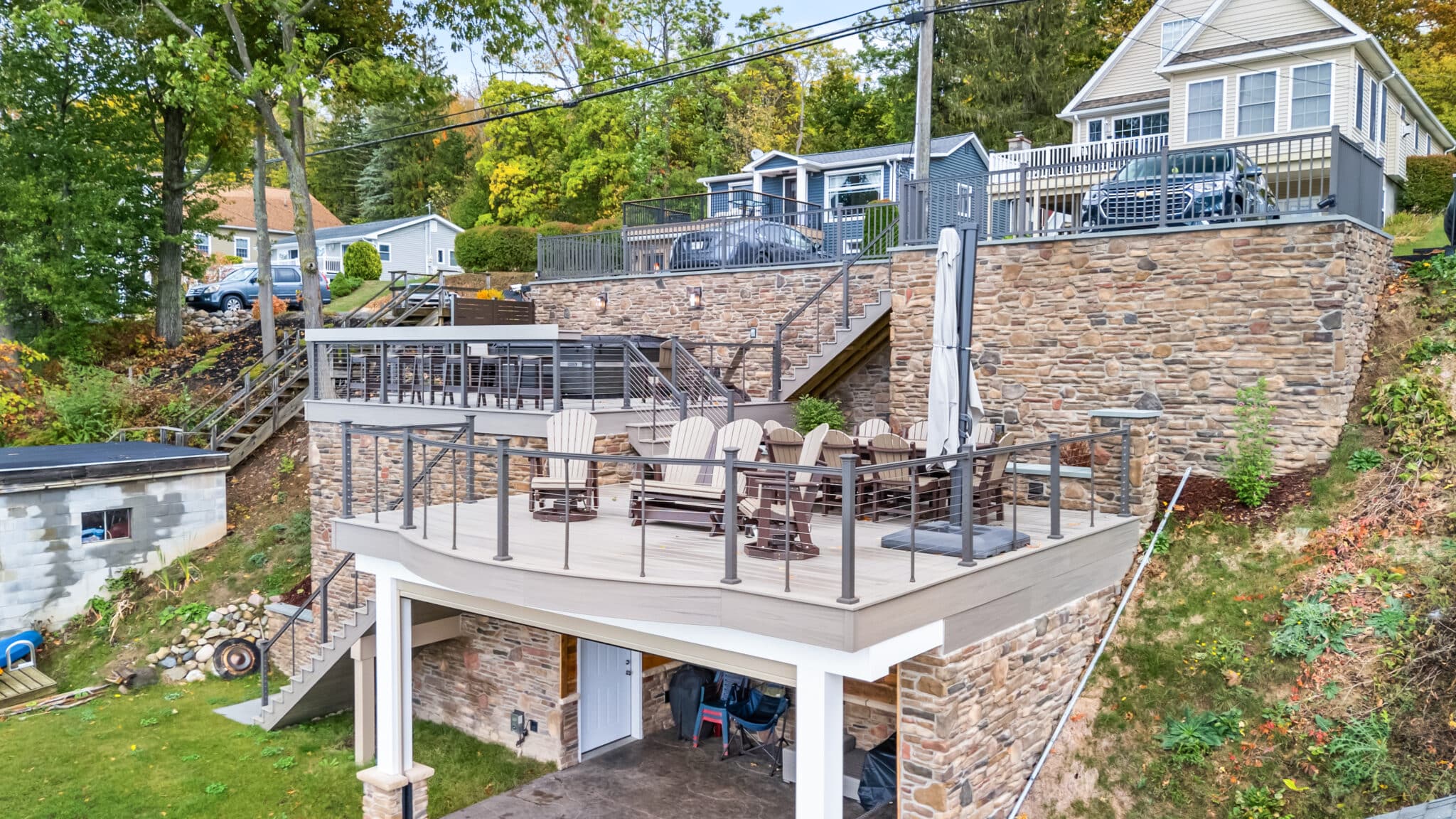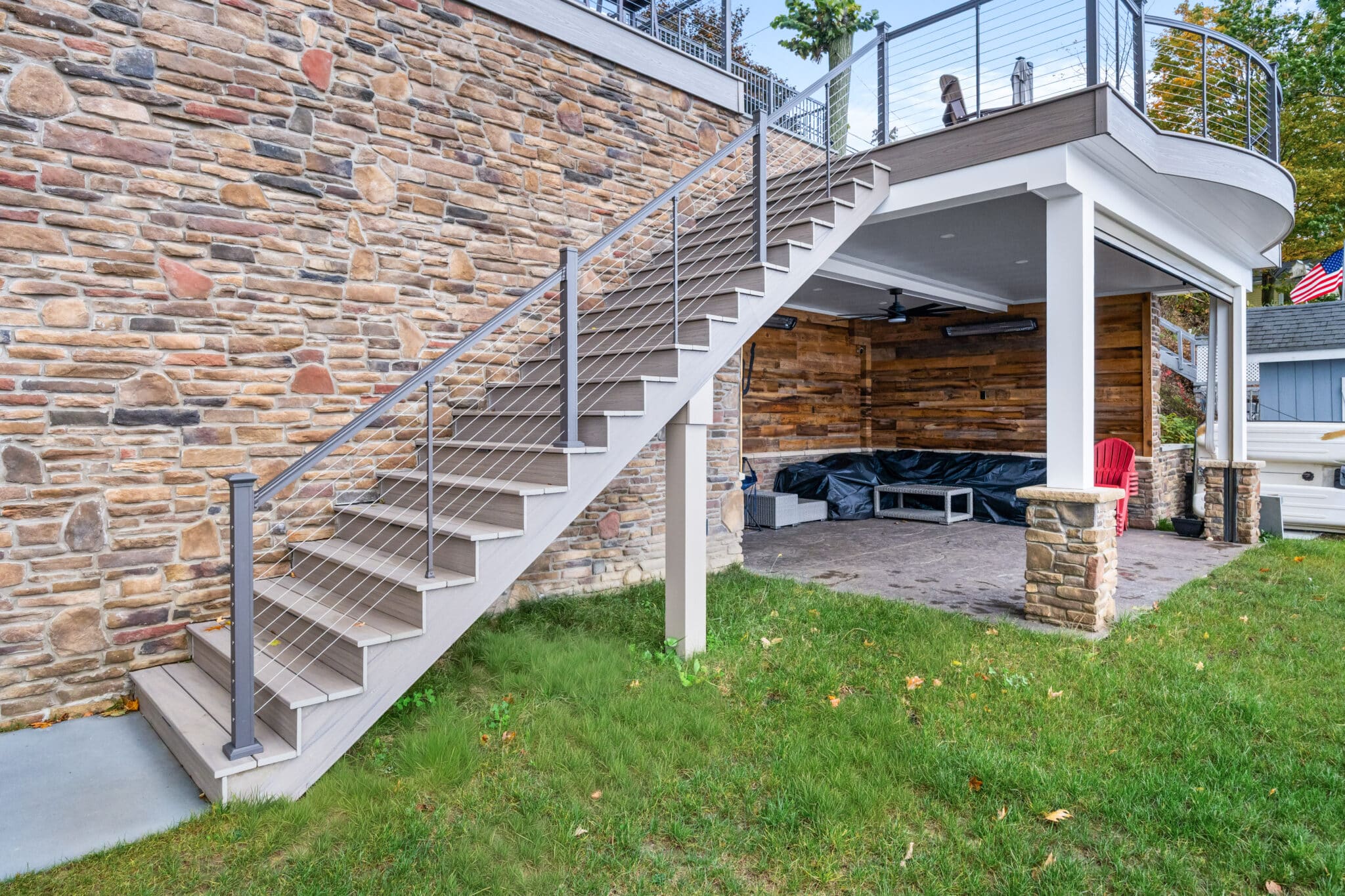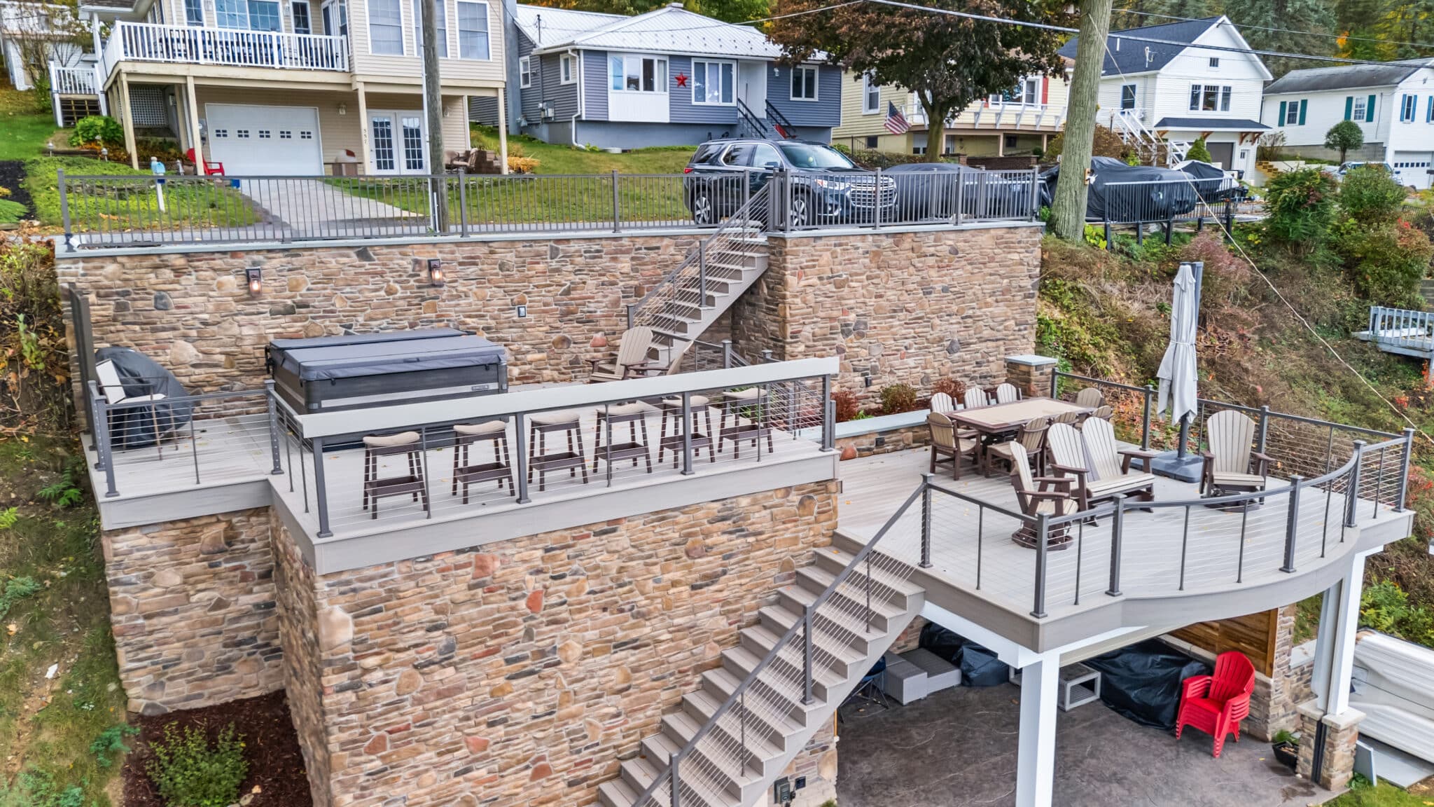 Stonework Multi-Level Trex Deck/Porch – Keuka Lake, NY Project ID: #028