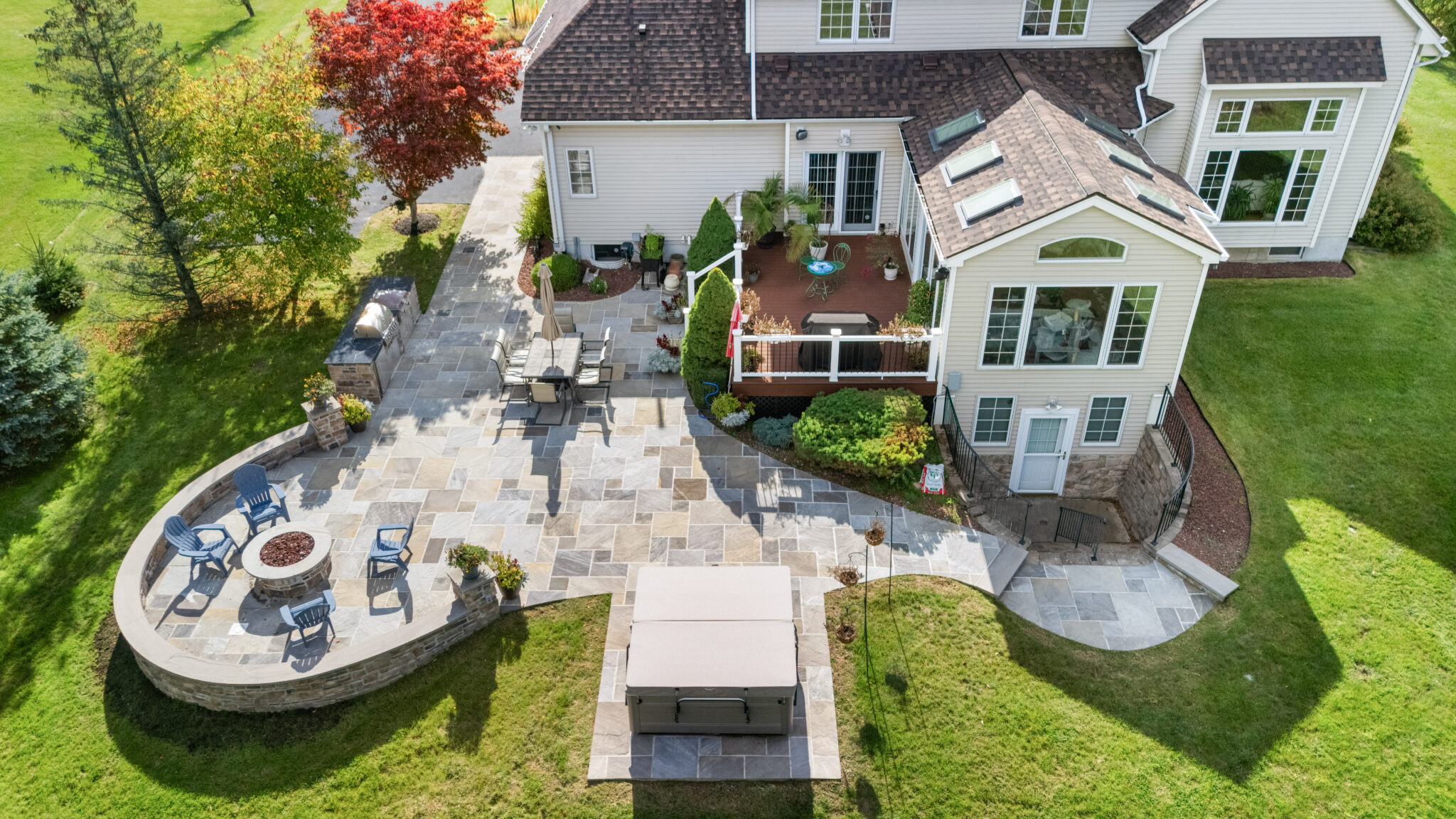 A-Frame Dormer Pavilion / Flagstone Patio / Trex Transcends Island Mist – Spencerport NY Project ID: #023