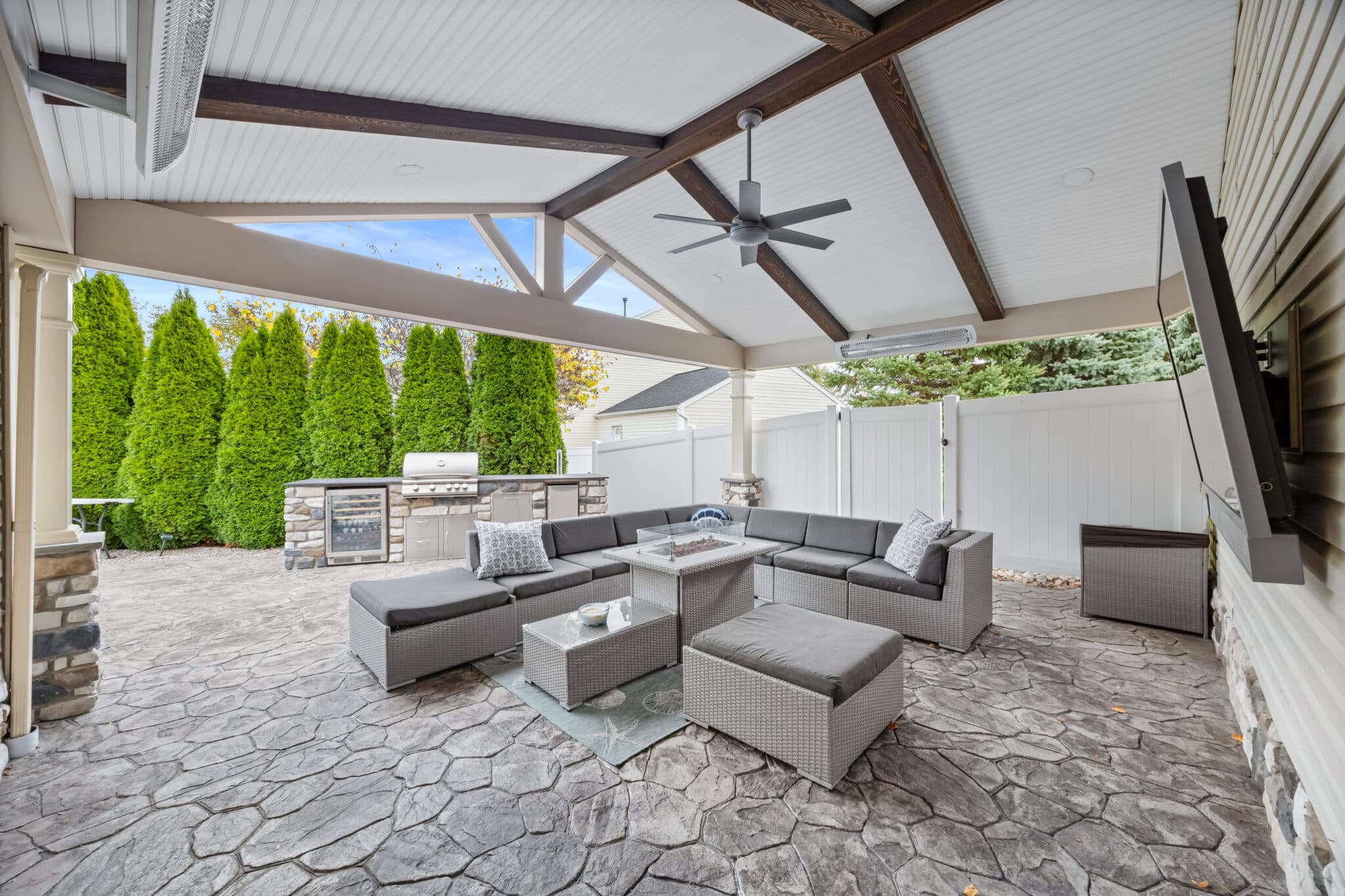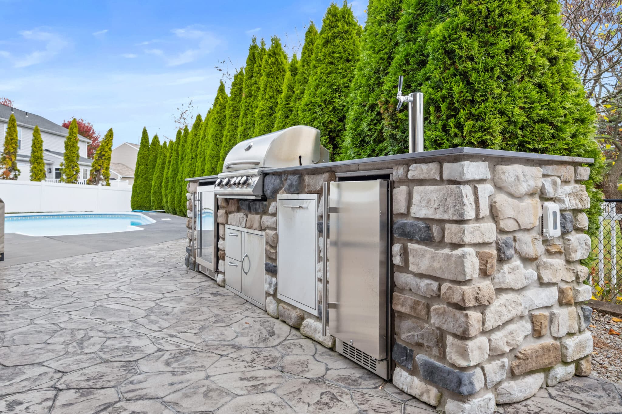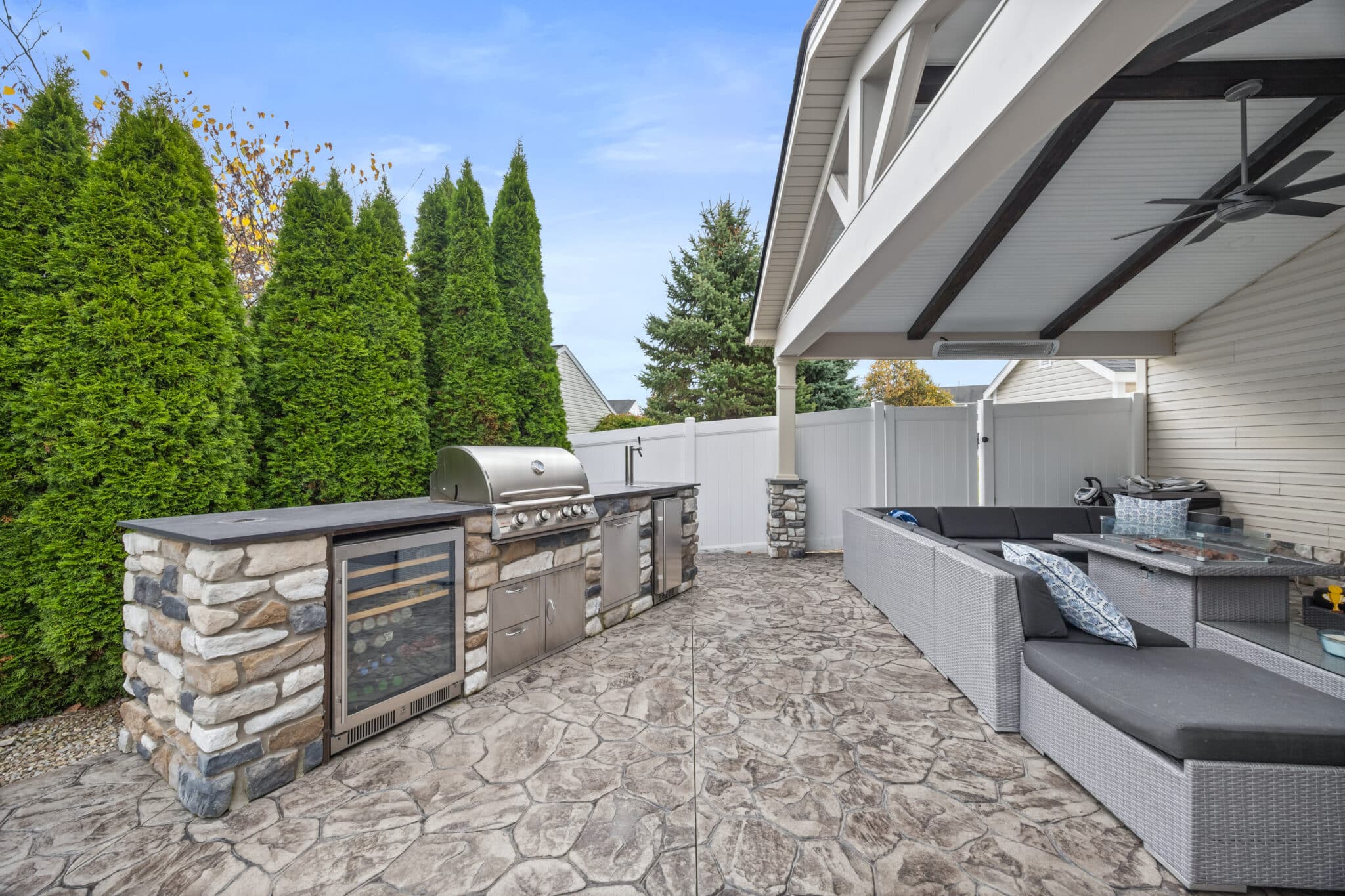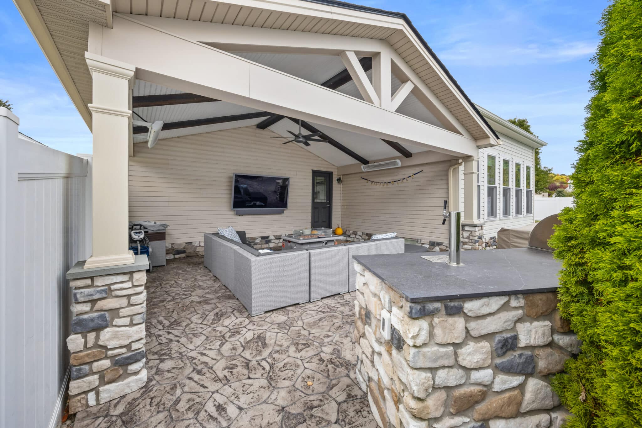 Outdoor Kitchen / Stamped Concrete Patio / Open Porch – Victor, NY Project ID: #055